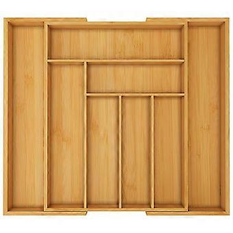 Bamboo Expandable Drawer Organizer for Utensils and Cutlery - Adjustable Large Silverware Tray for Kitchen Cabinets