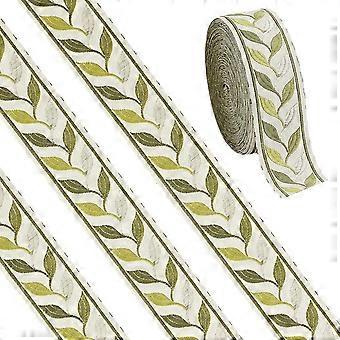 12.5 Yards Leaf Jacquard Ribbon Trim 1.34 Inch Wide Green Embroidered Ribbon Trim Embroidery Sewing Lace Trim for DIY Craft Gift Wrapping Costume Acce