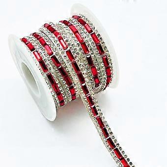 Red Rhinestone Ribbon 3 Yards 7MM Self Adhesive Strips for DIY Glitter Clothing and Crafts