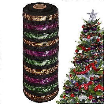 Christmas Mesh Ribbon 10 Yards Striped Design for DIY Holiday Wreaths Tree Bow and Table Decor