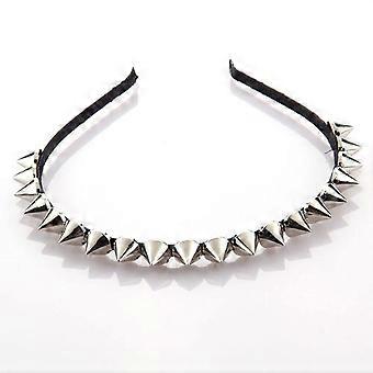 Silver Spike Punk Headband with DoubleLayer Pearl Rivet Design, Durable Alloy Frame and Comfort Fit