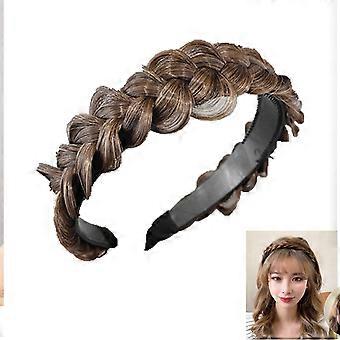 Light Brown Synthetic Braided Headband with Natural Fishbone Texture and Adjustable Comfortable Fit