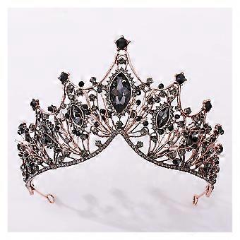 Black Bridal Rhinestone Headband Vintage Crystal Crown Wedding Hair Accessory Elegant Style