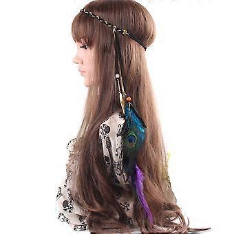 Bohemian Feather Headband for Women Bridal Wedding Festival Costume with Adjustable Bead Closure