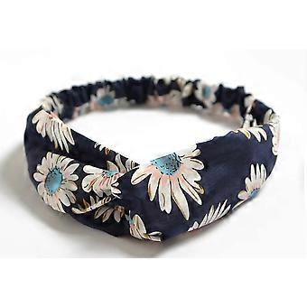 Women's Headband Chiffon Flower Navy Blue Elastic Cross Knot Hairband for Ladies Sports Comfort