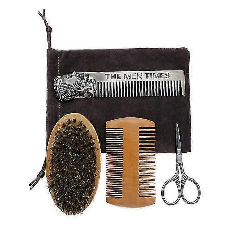 Beard Brush Set Professional Beard Comb Brush Care Mane Oval Brush Style Modeling Hair Stainless Steel Comb Beard Scissors Grate Comb