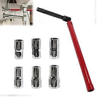- User-Friendly Design : The tap tool handles and keys are 11.5 cm and 26 cm respectively, allowing for easy maneuvering in tight spaces. This design enables quick installation and removal of fittings and sinks, making plumbing tasks hassle-free. - Versatile Nut Compatibility : This threaded wrench set includes heads with specifications of 8 mm, 9 mm, 10 mm, 11 mm, 12 mm, and 14 mm, along with a joint head featuring a 13 mm hex nut. With a variety of sizes, it caters to a wide range of applications, ensuring you have the right tool for your plumbing needs. - Durable Construction : Made from corrosion-resistant carbon steel, this faucet mounting tool set is designed for longevity. The material is not only hard and wear-resistant but also features a polished surface on each key, ensuring smooth handling without scratches. - Ergonomic Handle : The tilting handle provides flexible and effortless use, equipped with non-slip knurling for a secure grip. Each adapter is clearly marked with its specifications, allowing for quick identification and selection during your projects. Practical Applications : 1. Sink Installation : Easily reach tight spaces behind sinks for attaching or detaching fittings during installation or repair work. 2. Bathroom Renovations : Ideal for use in updating faucets and plumbing fixtures where space is limited, enhancing the efficiency of your renovation tasks. 3. Routine Maintenance : Perfect for everyday plumbing maintenance, ensuring you can handle a variety of nuts and fittings with confidence and ease. This tool set is designed to simplify your plumbing tasks while ensuring reliability and efficiency.