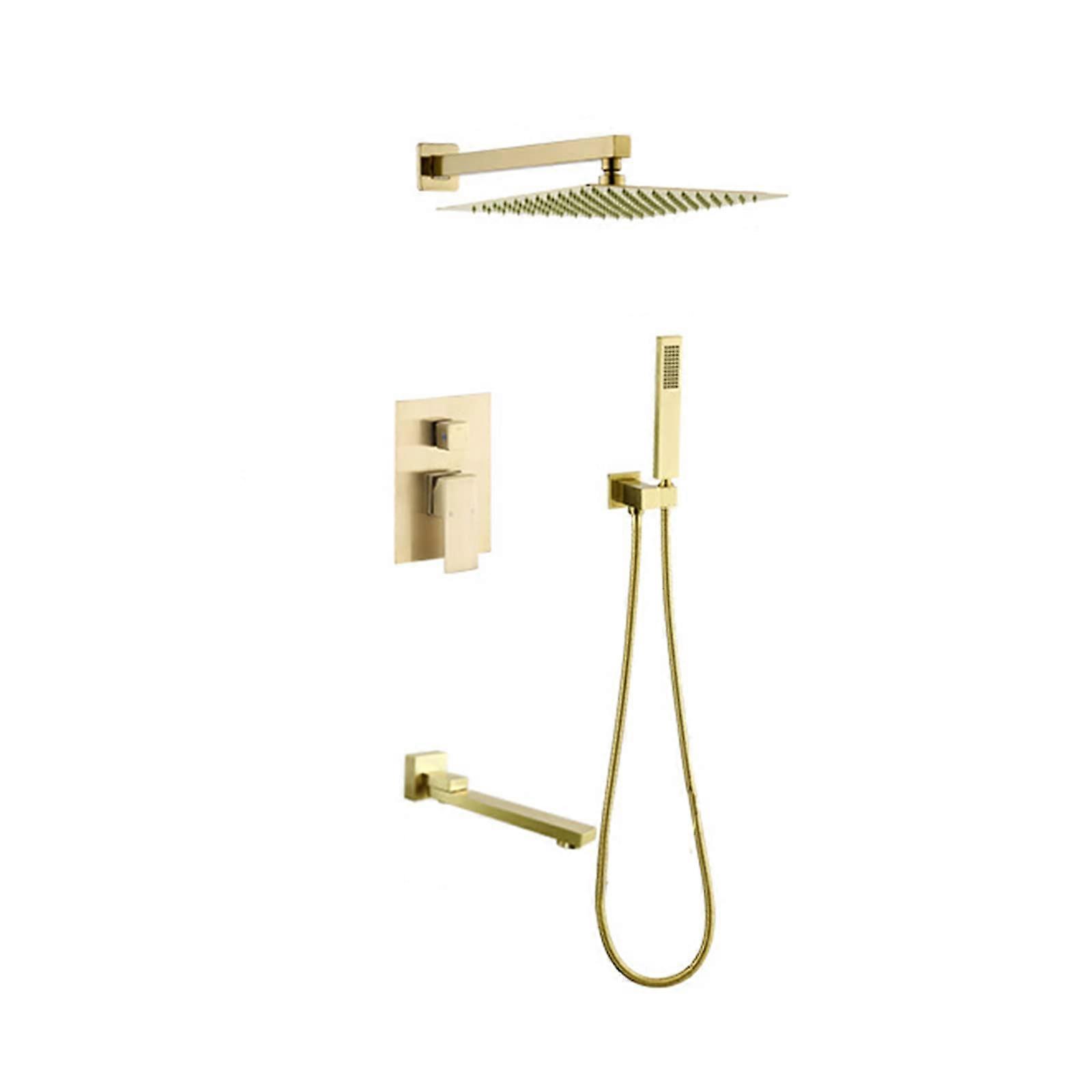 Bath Mixer Tap Shower Mixer Set Wall Mounted Brushed Chrome 10-Inch Overhead Rain Shower Concealed Tap System with Three Functions