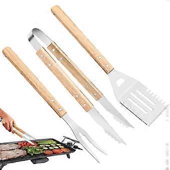 BBQ Tools Set 3 Heatresistant Wooden Handle Utensils for Cooking Grate