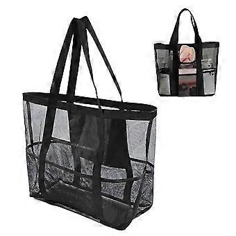 Beach Bag, Large Capacity, Foldable, Lightweight, Transparent, Black
