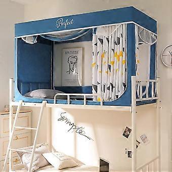 Girls Dormitory Bed Curtain for Loft Bed with Encrypted Mesh Curtains, Metal Eyelets, 1.15M Blue (Curtain*3+Top)