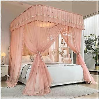 Bed canopy mosquito net with metal frame, decorative bed curtain for bedroom (Color: Yellow, Size: 180 x 220 cm) (Color: Pink, Size: 200 x 220 cm)