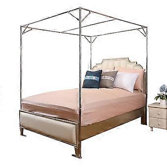 California King Canopy Bed Frame with 4 Corner Stainless Steel Posts, Full Coverage Design, Silver Finish