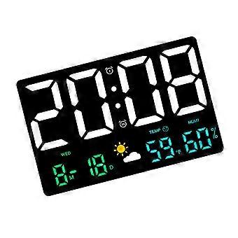 Bedroom Clocks Large Modern LED Wall Clock for Living Room, Digital Temperature Display, Black Plastic Design