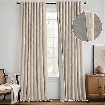 Beige Blackout Linen Curta 84 Inch 2 Panels Set Double Sided No Coating