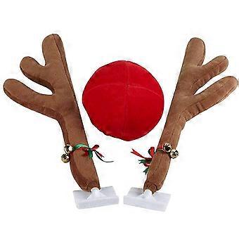 Christmas Car Decorations Reindeer Antler Kit with Red Nose Festive Holiday Auto Accessory Ref: 8049
