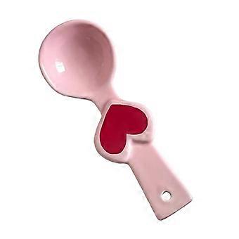 Heart Shaped Ceramic Soup Spoon Pink Polished Surface Comfortable Grip for Coffee Honey Buffet