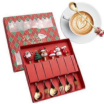 Christmas Cutlery Set Stainless Steel Spoons and Forks with Gift Box for Holiday Desserts