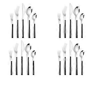 16 Piece Stainless Steel Flatware Set for 4, Black Mirror Polished Silverware with Hammered Handles