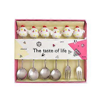 Christmas Coffee Spoon Set with Stainless Steel Dessert Forks, 6pcs Festive Holiday Tableware