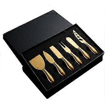 6Piece Stainless Steel Cheese Knife Set with Gold Flatware, RustProof Mirror Polished Utensils