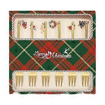 6Pcs Christmas Cutlery Set Reusable Stainless Steel Coffee Spoons and Forks Golden Festive Dining