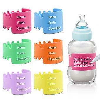 Baby Bottle Labels for Daycare, Reusable Writable Waterproof Silicone Name Bands, 6 Bright Colors
