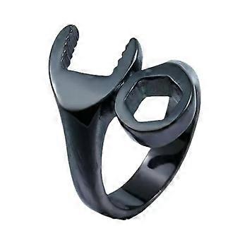 Biker Style Men's Ring with Wrench Design, Stainless Steel, Size 7–14, Black Color, Durable and Stylish