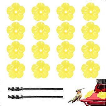 16Pack Yellow Hummingbird Feeder Replacement Flowers with Bee Guards and Cleaning Brush