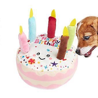 Birthday Cake Shape Teething Chew Toys Soft Plush Pink 6.69x6.69x3.54 In Dog Enrichment Toy For Small Medium Dogs