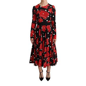 Black Sicily Bag Print Flared Midi Dress