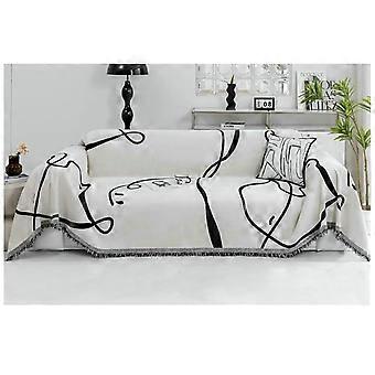 Black Sofa Throw, Chenille Blanket for Couch Geometric Pattern Sofa Cover 1 Seater (180x130CM) 2 Seater (180x280CM)