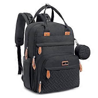 Diaper Bag Backpack Waterproof With Changing Pad Stroller Straps Pacifier Case Black Polyester Unisex