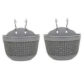 Hanging Planter Rattan Texture Plastic Flower Pot with Drainage for Balcony Wall Garden 2PCS Grey