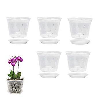 5 Inch Clear Orchid Pots with Drainage Holes and Saucers for Healthy Root Growth Indoor Outdoor