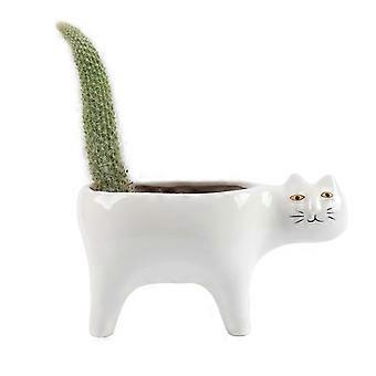 Cat Planter Ceramic Cat Shaped Succulent Pot with Drainage for Indoor Home and Office Decor
