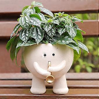 Human Shaped Succulent Pot for Indoor Garden Decoration, Ceramic Planter with Unique Design and Green Color
