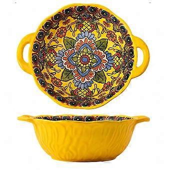 - Valuable & Affordable: This set includes 2 porcelain soup bowls with convenient handles. Each bowl measures approximately 9.7 inches in diameter and 3 inches deep, holding a generous capacity of 40 ounces (1200 ml), making them perfect for serving French onion soup, chili, beef stew, pasta, broth, seafood soup, salad, dessert, ice cream, rice, noodles, and more – ideal for everyday use. - Exquisite Design: Crafted from high-quality clay and fired at high temperatures, these nontoxic ceramic bowls are safe for your family. The vibrant floral patterns are created through an under-glaze process, ensuring they won't fade over time. The retro and elegant embossed vertical stripes on the exterior provide an appealing visual experience while enjoying your meals. - Double Ear Design: The bowls feature a practical ear-shaped handle on each side that provides balance and stability while serving. They're sturdy but lightweight, keeping your hands safely away from heat. Designed for stacking, these bowls are easy to store, saving valuable kitchen space. - Easy to Clean & Versatile: With a delicate ceramic texture that is thick and durable, these bowls are easy to clean and dishwasher safe. They can also be used in the microwave and oven, making them perfect for gatherings with friends, family dinners, or daily meals in restaurants. Experience the perfect blend of functionality, beauty, and practicality with these versatile porcelain soup bowls, designed to enhance your dining experience while making meal preparation and cleanup effortless.