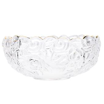 Glass Dessert Bowl with Embossed Gold Rim, Rose Pattern Clear Glass for Ice Cream and Salads