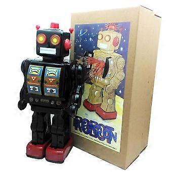 Retro Tin Robot Toy with Electric Walking and Rotating Action, Black Vintage Collectible with Gunfire Sound