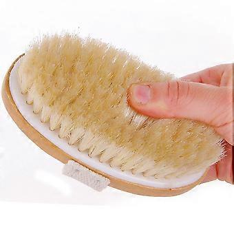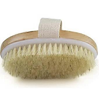 Dry Body Brush with Natural Bristles and Secure Strap, Wooden Bath Scrubber for Exfoliating Skin