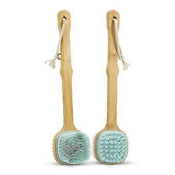Silicone Bath Brush with Long Handle, DualSided Exfoliating Back Scrubber for Shower, Blue Ref: 1867