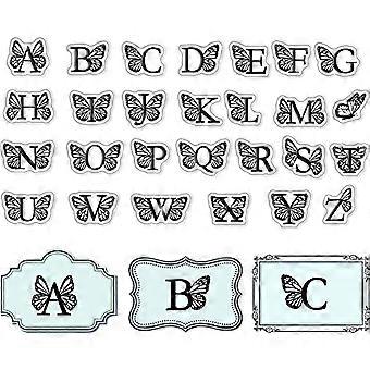 Butterfly Initials A to Z Clear Stamps for Card Making Decoration Scrapbooking, Alphabet Silicone Rubber Stamp for Embossing Photo Album Decor Craft