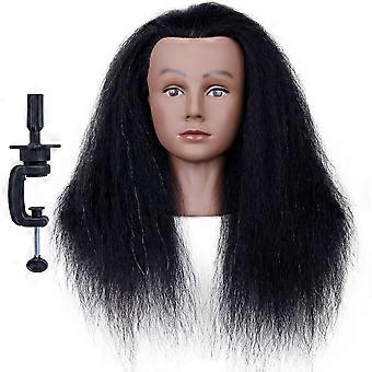 18 Inch Real Human Hair Mannequin Head for Hair Styling Training with Clamp, Cosmetology Practice Head