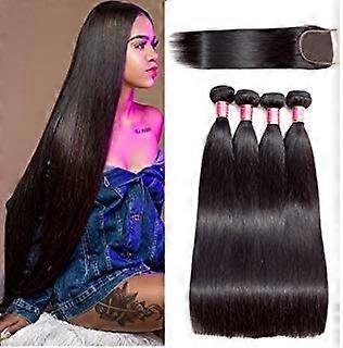 Brazilian Straight Hair 4 Bundles with 12in Lace Closure 14 16 18 20 Unprocessed Virgin Human Hair Extensions