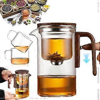 Glass Teapot with Wooden Handle 650ml for Loose Leaf Tea, OneTouch Water Separation Design