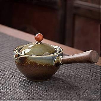 Japanese Style Ceramic Teapot with Wooden Side Handle for Kung Fu Oolong Tea, Black Pottery Design