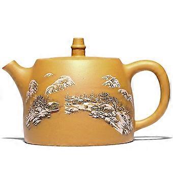 Large Capacity Tea Kettle for Stove, Handmade Purple Sand Clay Teapot with Creative Painted Design