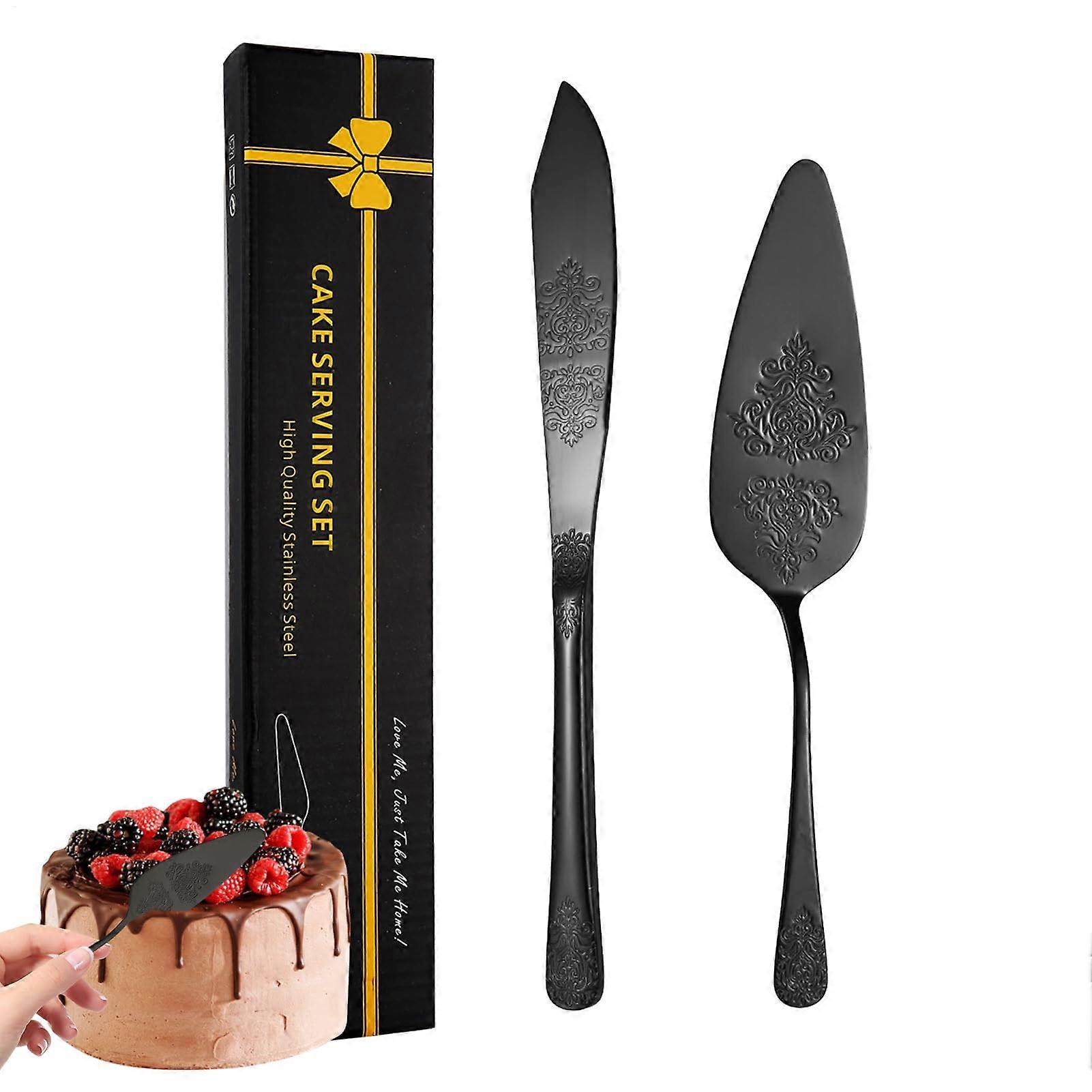 Cake Cutting Set For Wedding, Cake Cutter And Server, Black 2Piece Knife And Spatula Set With Ergonomic Handle