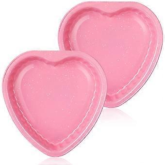 Pink Heart Shaped Cake Pan Set 10 Inch Nonstick Carbon Steel for Valentine's Day Wedding Baking